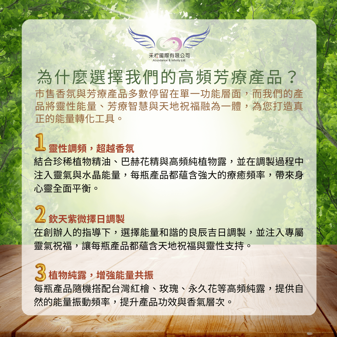 這是一套 專為新年能量重啟而設計 的多重祝福組合,每一瓶皆以靈性調頻 × 天地祝福 × 高頻植物純露製成,讓你的能量場被全面支持與提升,迎接 2026 的圓滿富足。